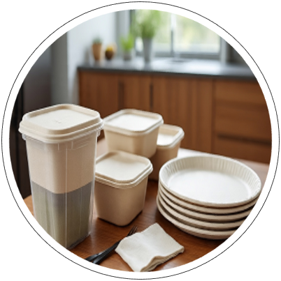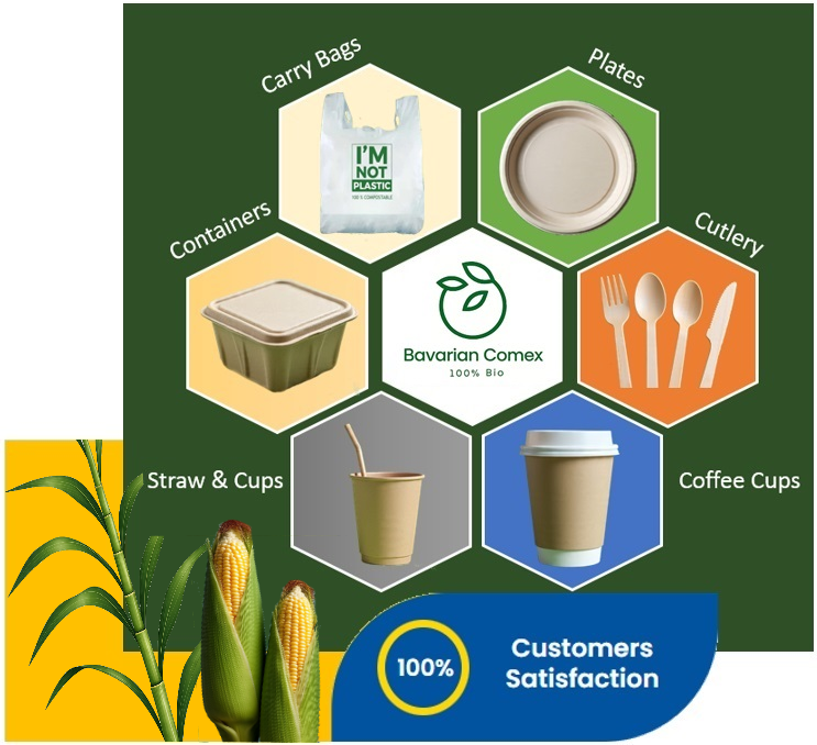 sugarcane bagasse containers. We offer variety of compostable, biodegradable and eco-friendly products that can be used in day to day life. These products are alternatives to traditional plastic, designed to break down naturally without harming the environment. These compostable products breaks down into non-toxic components (CO2, water, biomass) in a compost environment, leaving no residue and very helpful for the environment.