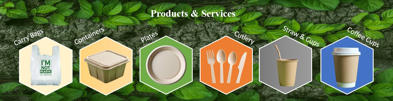 Made from plant-based materials like Bagasse, Wheat bran, Palm leaves, Bamboo fiber etc. creates Eco-friendly alternatives to plastic, aluminum containers & plates.